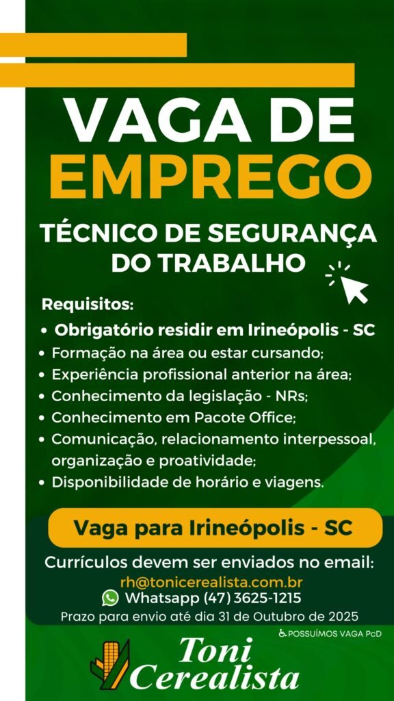 Conheça as nossas vagas em aberto e venha fazer parte da equipe Toni Cerealista.
